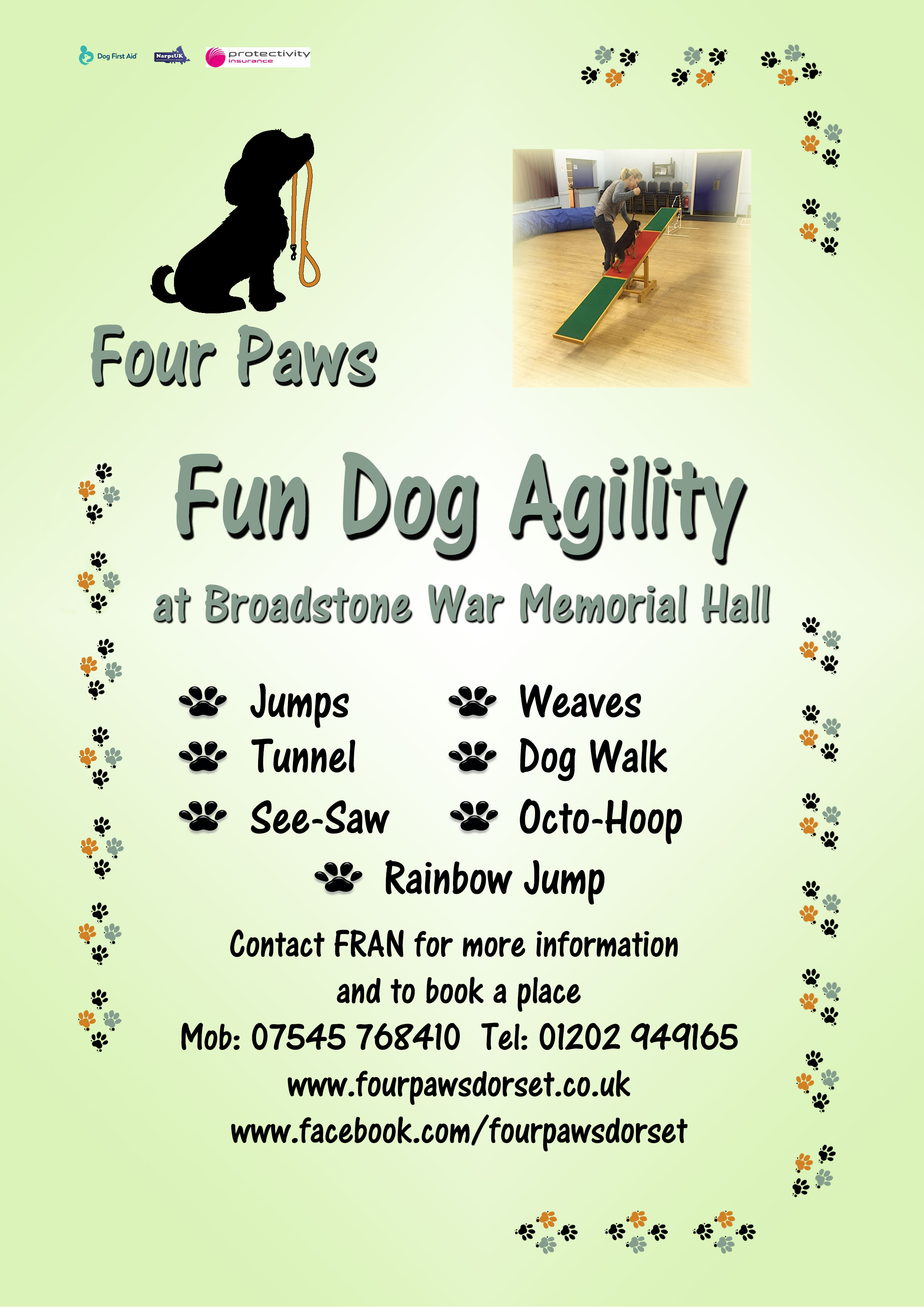 Four Paws, Fun Dog Agility Classes. New Classes starting at Broadstone War Memorial Hall … Zoom in Read more