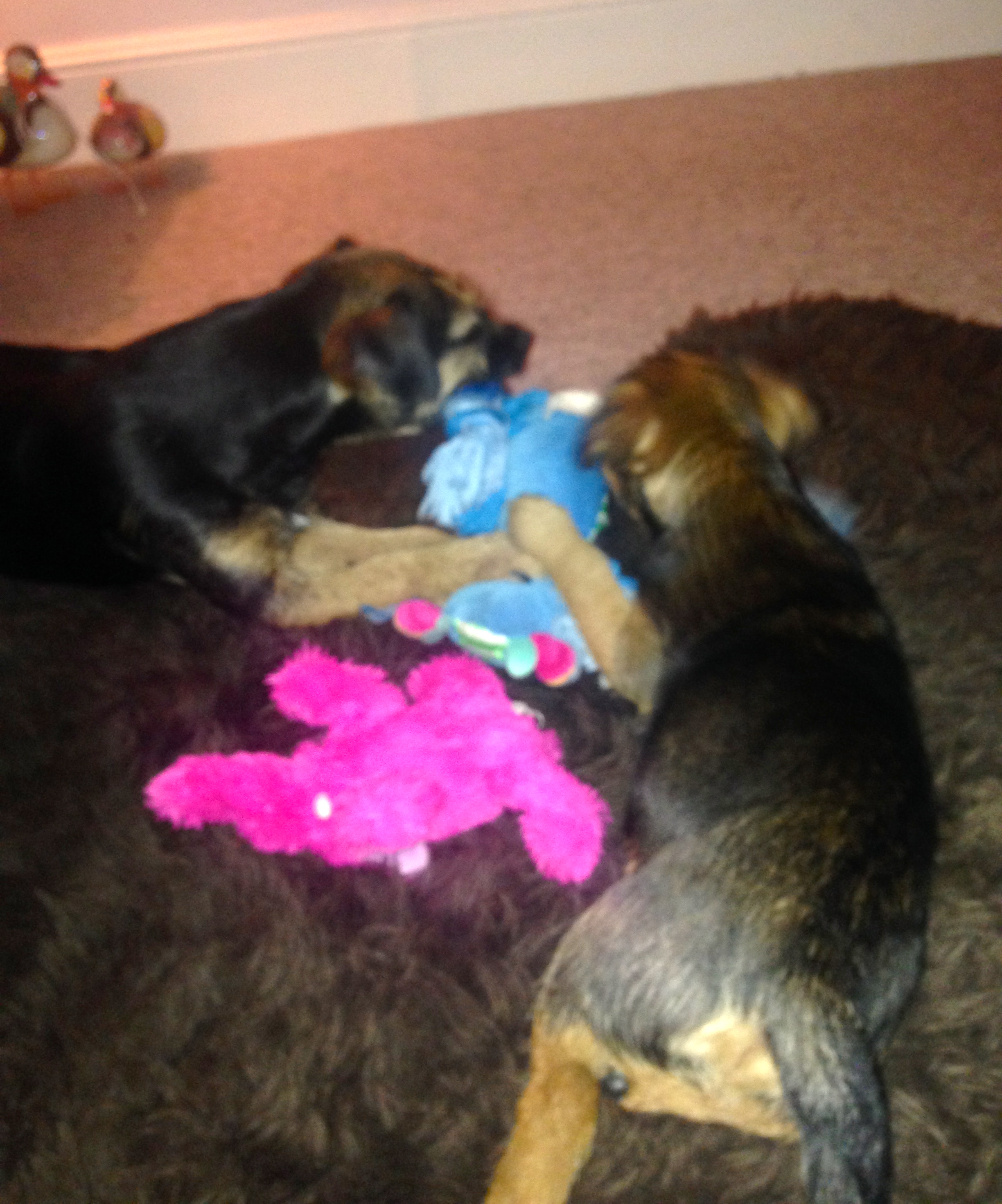 Dogs having fun sharing a toy! Zoom in Read more